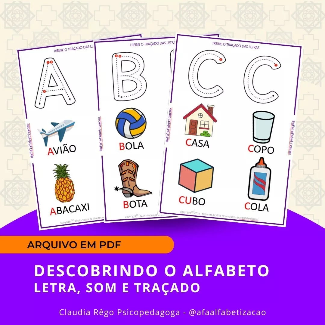 Recurso elaborado para desenvolver o conhecimento do princípio alfabético. Para aprender a ler, a criança ou jovem precisa aprender que as letras têm NOME, SOM E TRAÇADO.